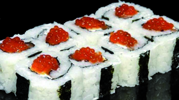 Лосось, краб сурими, сыр сливочный, огурец, икра летучей рыбы