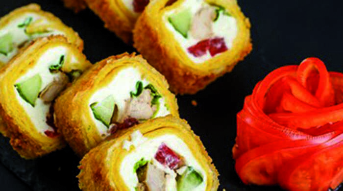 Курица, лук, сыр сливочный, болгарский перец, тортилья сырная